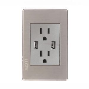 PLACA METÁLICA CON 2 CONTACTOS Y 2 ENTRADAS DE USB PLATEADO