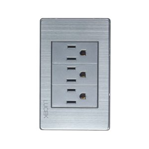 PLACA METALICA CON 3 CONTACTOS DE 1 MÓDULO PLATEADO.