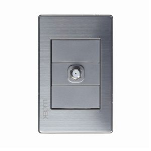 PLACA METÁLICA CON TOMA DE TELEVISIÓN PLATEADO.