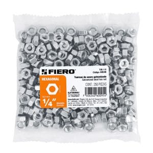 BOLSA CON 250 TUERCAS 1/4 HEXAGONALES DE ACERO GALVANIZADO