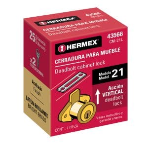 CERRADURA PARA MUEBLE, MODELO 21, LATÓN, HERMEX