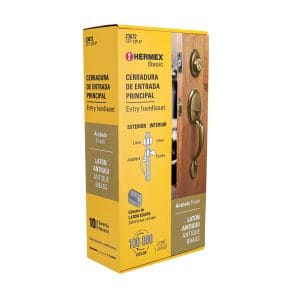 JALADERA, PERILLA Y CERROJO LLAVE, LATÓN BRILLANTE, HERMEX