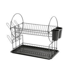 ESCURRIDOR NEGRO DE ACERO CON 2 NIVELES PARA TRASTES