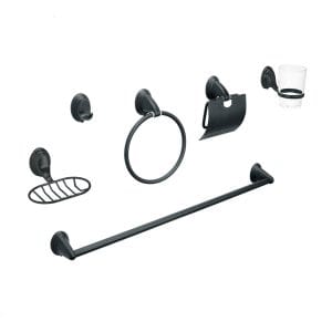 JUEGO DE 6 ACC. P/ BAÑO NEGRO MATE CHAPETON OVALADO AQUA