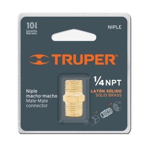 NIPLE MACHO-MACHO DE LATÓN, CUERDA 1/4″ NPT, TRUPER