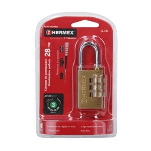 CANDADO DE COMBINACIÓN 28 MM CUERPO DE LATÓN EN BLÍSTER