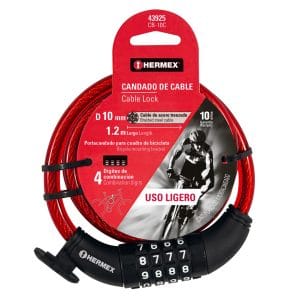 CANDADO DE CABLE CON COMBINACIÓN, 10 MM X 1.20 M, HERMEX