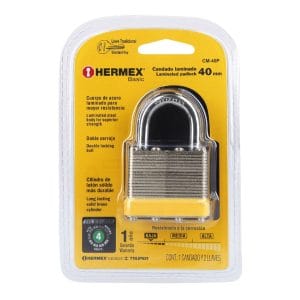 CANDADO LAMINADO, 40MM, GANCHO CORTO, BLISTER, HERMEX BASIC