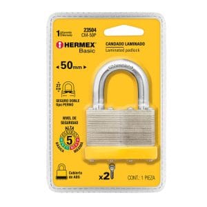 CANDADO LAMINADO, 50MM, GANCHO CORTO, BLISTER, HERMEX BASIC