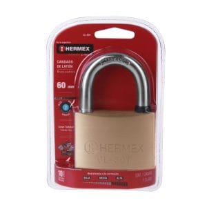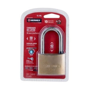 CANDADO DE LATÓN 50 MM GANCHO LARGO EN BLÍSTER, HERMEX