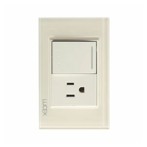 PLACA CON 1 INTERRUPTOR DE ESCALERA Y 1 CONTACTO DE 1.5 MODULOS CRISTAL BLANCO