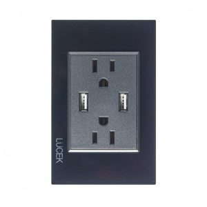 PLACA CON 2 CONTACTOS Y 2 ENTRADAS DE USB CRISTAL NEGRO