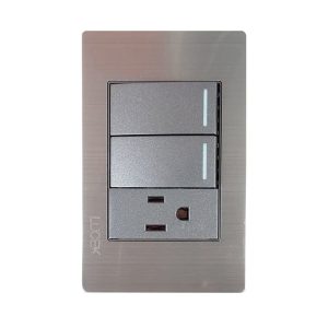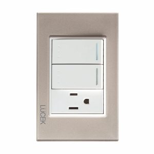 PLACA CON 2 INTERRUPTORES SENCILLOS Y 1 CONTACTO DE 1 MÓDULO