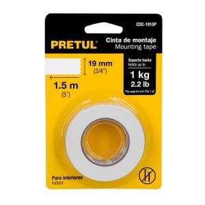 CINTA DOBLE CARA DE 19 MM X 1.5 M PRETUL