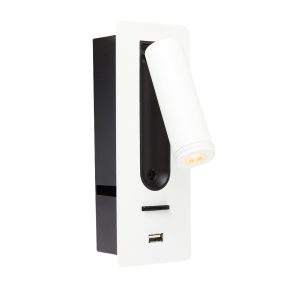LÁMPARA DE LECTURA LED 3.4 W, LUZ SUAVE CÁLIDA, PUERTO USB PARA DISPOSITIVOS, EMPOTRADO EN PARED DELPHINUS II