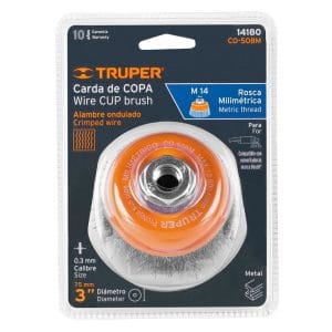 CARDA COPA 3 ALAMBRE ONDULADO FINO, EJE M14, TRUPER