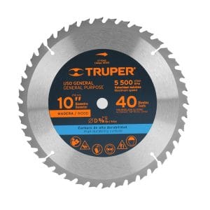 DISCO SIERRA 10″ PARA MADERA, 40 DIENTES CENTRO 5/8″, TRUPER
