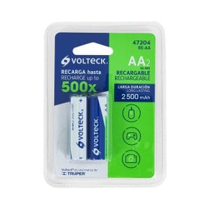 BLÍSTER CON 2 PILAS AA RECARGABLES LARGA DURACIÓN, 2500 MAH