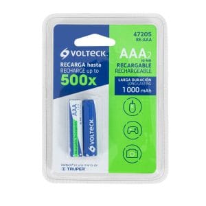 BLÍSTER CON 2 PILAS AAA RECARGABLES LARGA DURACIÓN, 1000 MAH