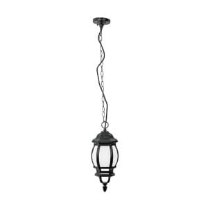 ARBOTANTE TIPO FAROL SUSPENDIDO NEGRO, LÁMPARA NO INCLUIDA