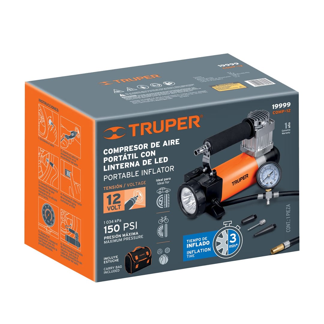 - Infla una llanta en la mitad de tiempo que otras marcas