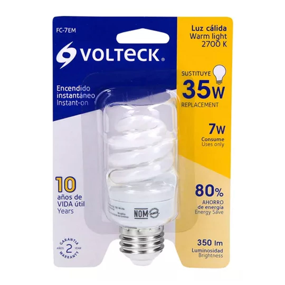 LÁMPARA ESPIRAL MINI T2 7 W LUZ CÁLIDA EN BLÍSTER, VOLTECK