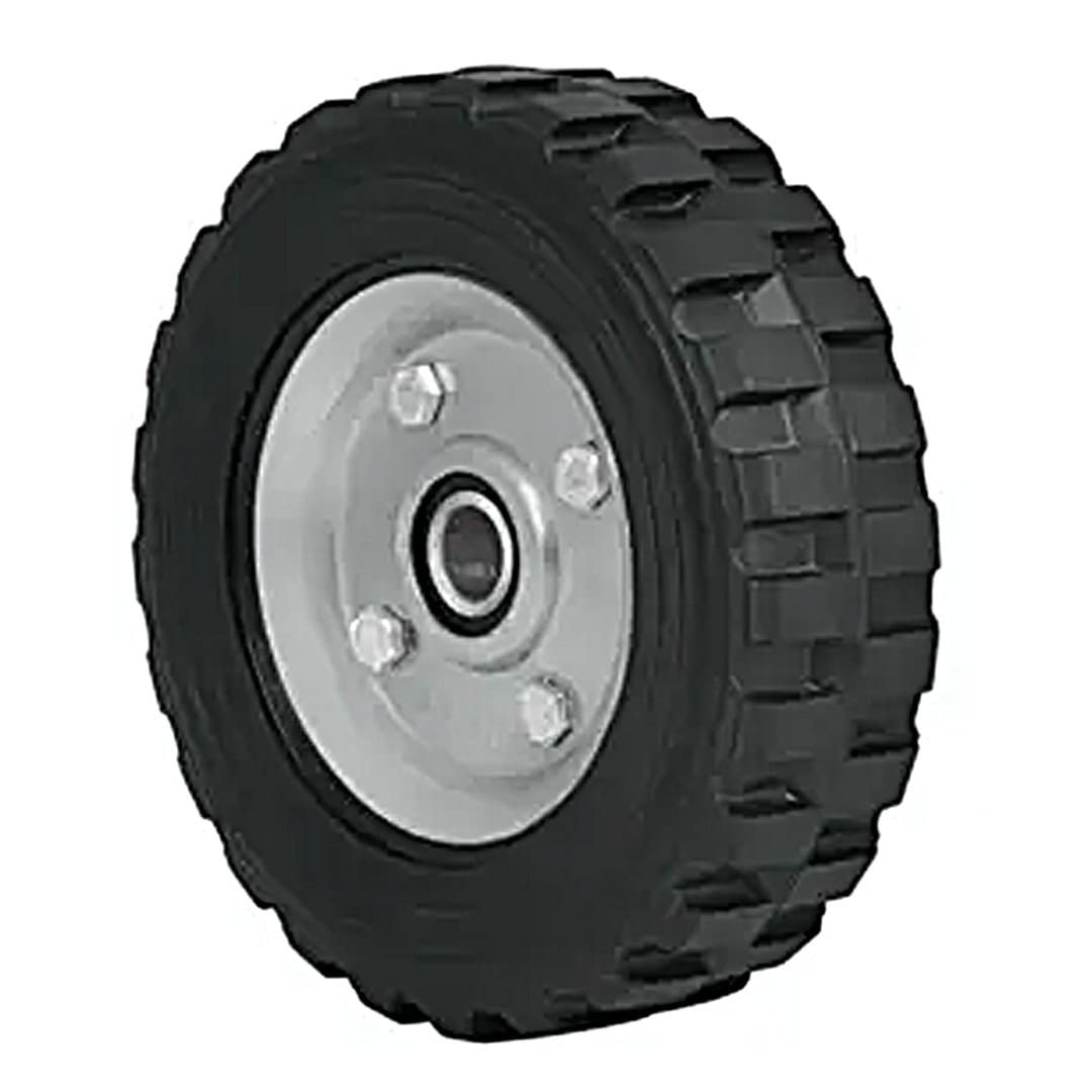 • Rueda de hule sólido imponchable, en color negro