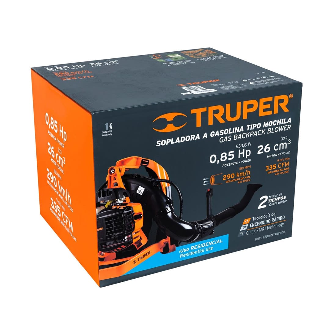 • Motor de 0.85 HP a 2 tiempos